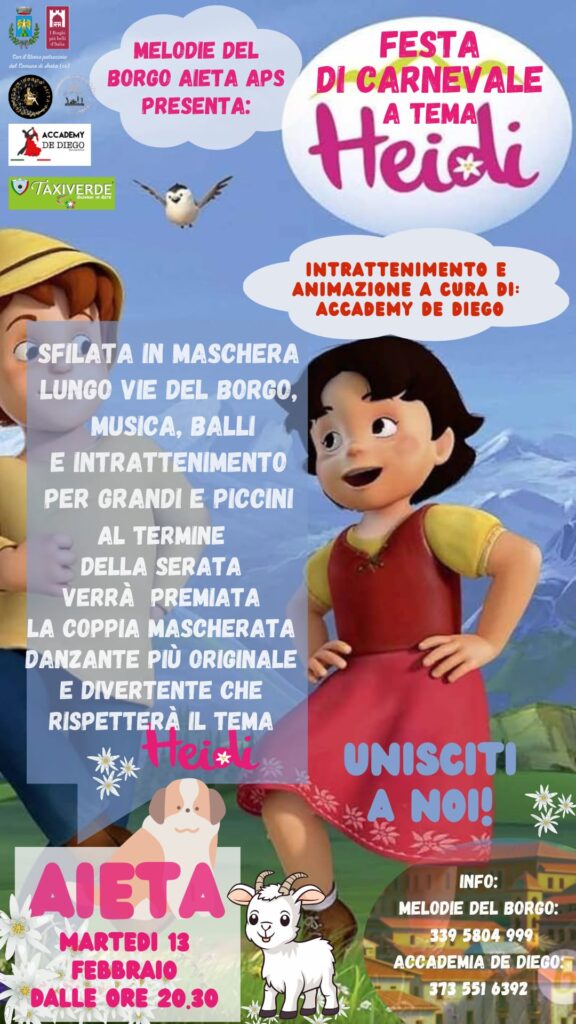 Aieta. Martedì 13 Febbraio una sfilata di Carnevale a tema “Heidi”