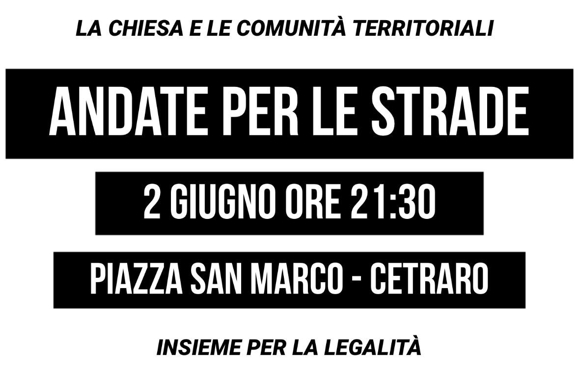 Il prossimo 2 giugno alle 21:30 in Piazza San Marco, la città di Cetraro sarà teatro di un’importante iniziativa di incontro, preghiera e riflessione sul tema della legalità e del rispetto.