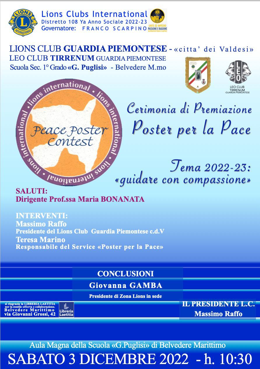 Si terrà domani, sabato 3 dicembre, alle ore 10.30, presso la scuola secondaria di primo grado “G. Puglisi” di Belvedere Marittimo, la premiazione del concorso internazionale Lions “Poster per la Pace” realizzato dal Lions Club di Guardia Piemontese.