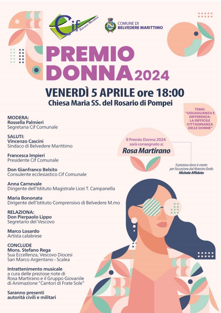 Belvedere Marittimo. “Premio Donna 2024”. Appuntamento per Venerdì 05 Aprile