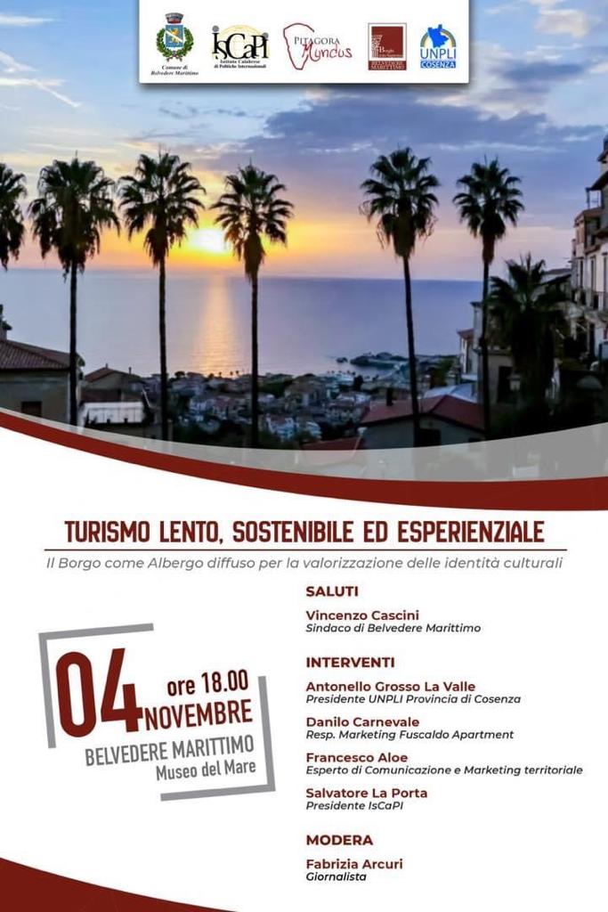 “Turismo lento, sostenibile ed esperenziale”. Questo il titolo dell’incontro che si terrà venerdì 4 novembre, alle ore 18, presso il Museo del Mare di Belvedere Marittimo.