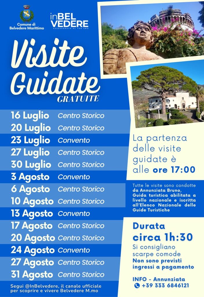 L’estate belvederese si arricchisce di un’altra iniziativa: visite guidate gratuite. La prima sarà domani, 16 luglio, a partire dalle ore 17. A effettuarle sarà la guida turistica tortorese Annunziata Bruno.