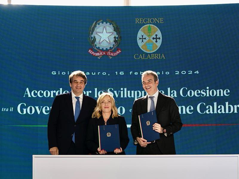 Il presidente del Consiglio dei ministri, Giorgia Meloni, e il presidente della Regione Calabria, Roberto Occhiuto, hanno firmato venerdì 16 febbraio presso il porto di Gioia Tauro l’Accordo per il Fondo sviluppo e coesione 2021-2027. Alla cerimonia era presente anche il ministro per gli Affari europei, le Politiche di coesione e il Pnrr, Raffaele Fitto.