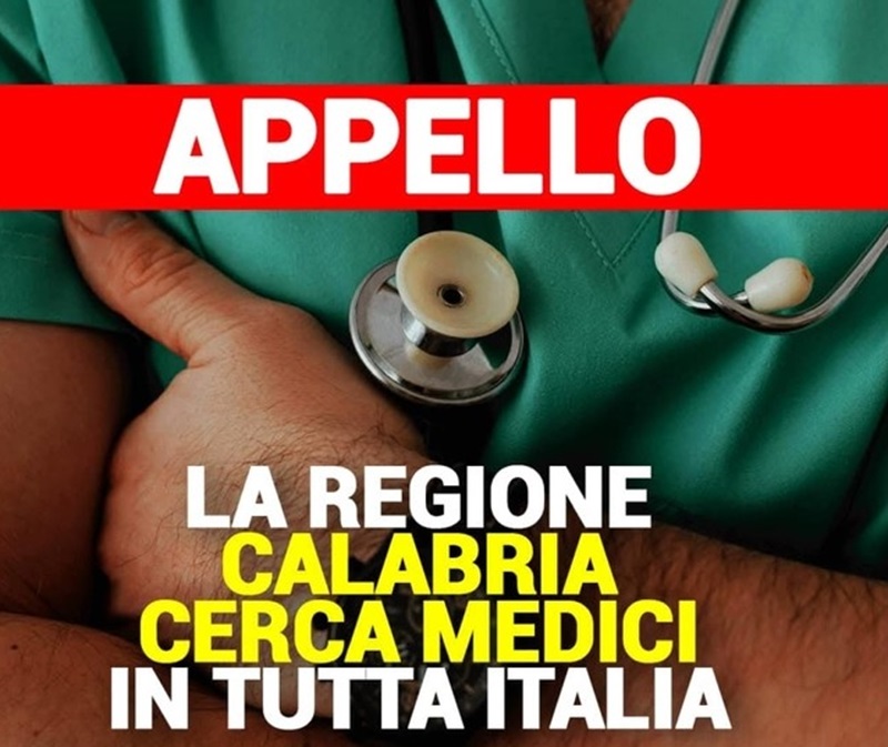 “La Regione Calabria cerca medici in tutta Italia: 466 postazioni di guardia medica; 91 postazioni di medico di medicina generale; 148 postazioni 118”. Campeggia così, da poco più di una settimana, sul sito istituzionale della Regione Calabria, questo “appello-annuncio”.