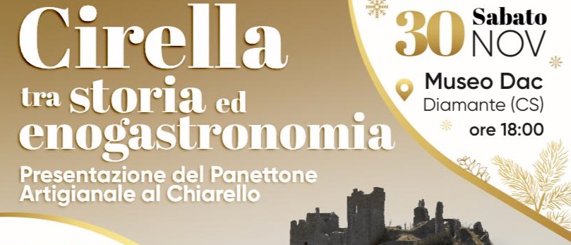 Sabato 30 novembre, alle ore 18:00, il Museo DAC di Diamante (CS) ospiterà l’evento “Cirella tra storia ed enogastronomia”, durante il quale sarà presentato il Panettone Artigianale al Chiarello, una creazione esclusiva del maestro pasticciere Giovanni Imbelloni.