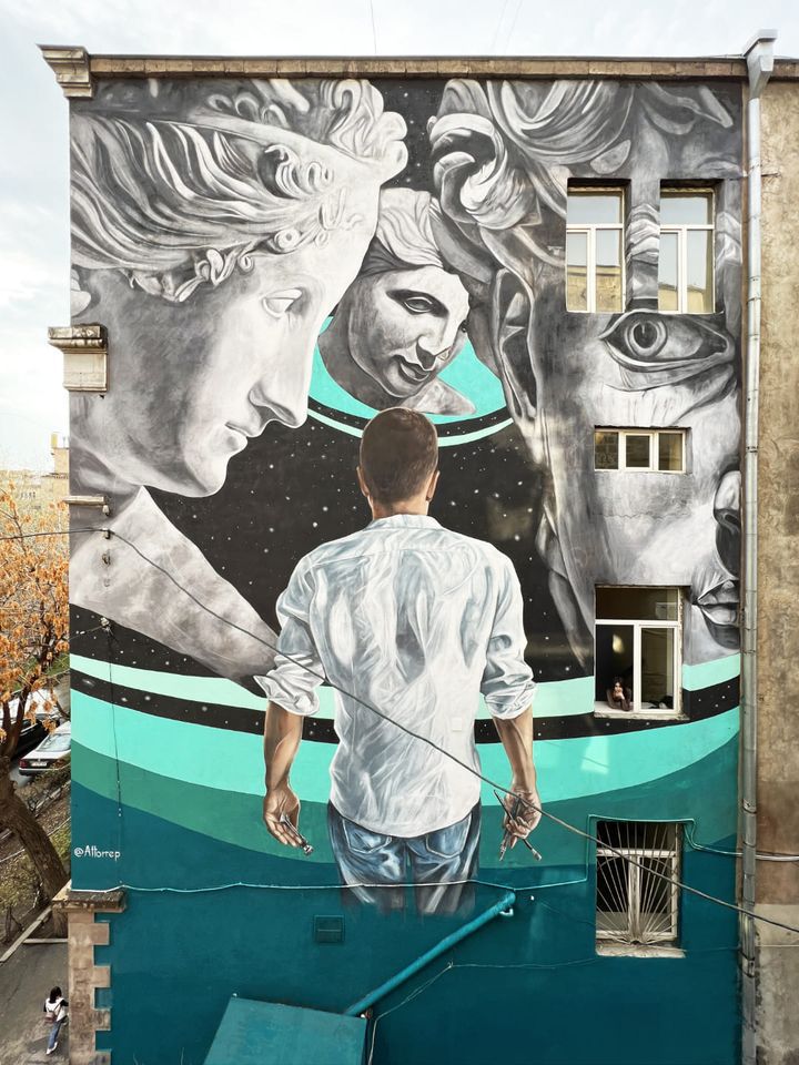 Nuova avventura all’estero per l’artista diamantese Antonino Perrotta, di rientro da Yerevan, capitale dell’Armenia, in seguito alla realizzazione di un’opera murale sulla facciata dell’Accademia Nazionale di Belle Arti. L’opera dal titolo La Cultura salverà il Mondo è stata inaugurata mercoledì scorso, 22 marzo, nell’ambito della Giornata del Design Italiano nel Mondo 2023 “La qualità che illumina: l’energia del design per le persone e per l’ambiente”, in collaborazione con “CITY OF THE FUTURE” Yerevan Street Art Fest.