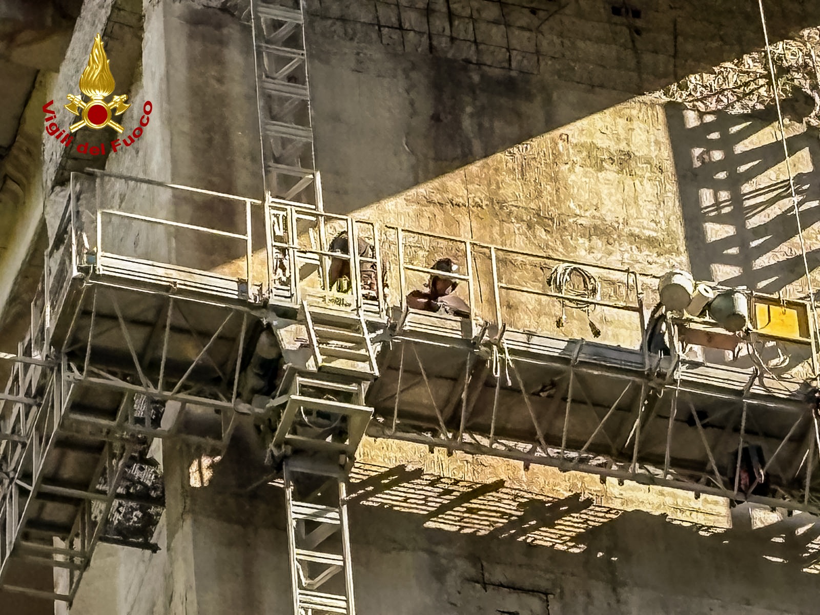 I Vigili del Fuoco, con l’impiego delle tecniche SAF, hanno raggiunto i lavoratori bloccati, li hanno messi in sicurezza mediante imbracature speleo e li hanno guidati nella discesa controllata fino a un’area sicura, portando così a termine con successo l’intervento di recupero senza ulteriori conseguenze.