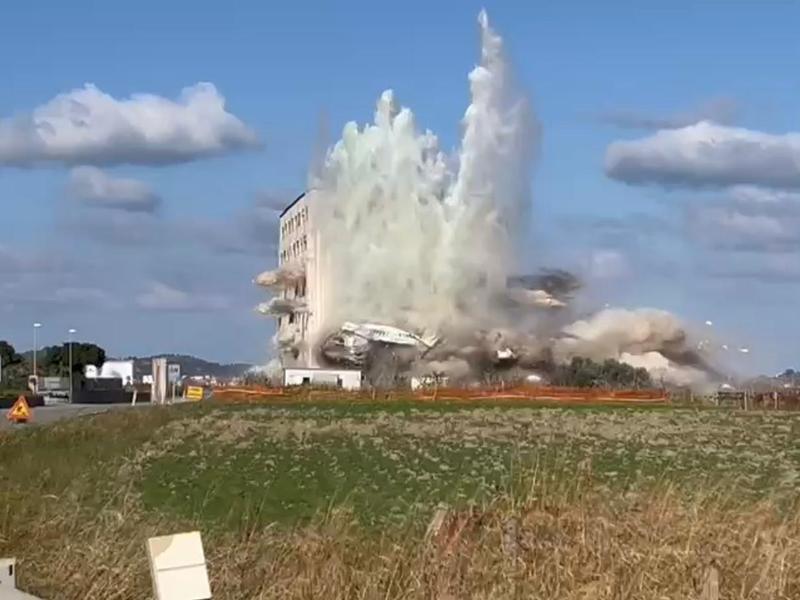 L’edificio, un ex mobilifico, di 6 piani – 6000 mq -, che si trovava sulla statale 106, ed era stato dapprima sequestrato (nel 2007) e successivamente confiscato (nel 2009) a Costantino Mangeruca, presunto prestanome della cosca “locale” di ’ndrangheta, è stato fatto implodere grazie alla tecnica della distruzione controllata attraverso 400 chili di dinamite in microcariche.