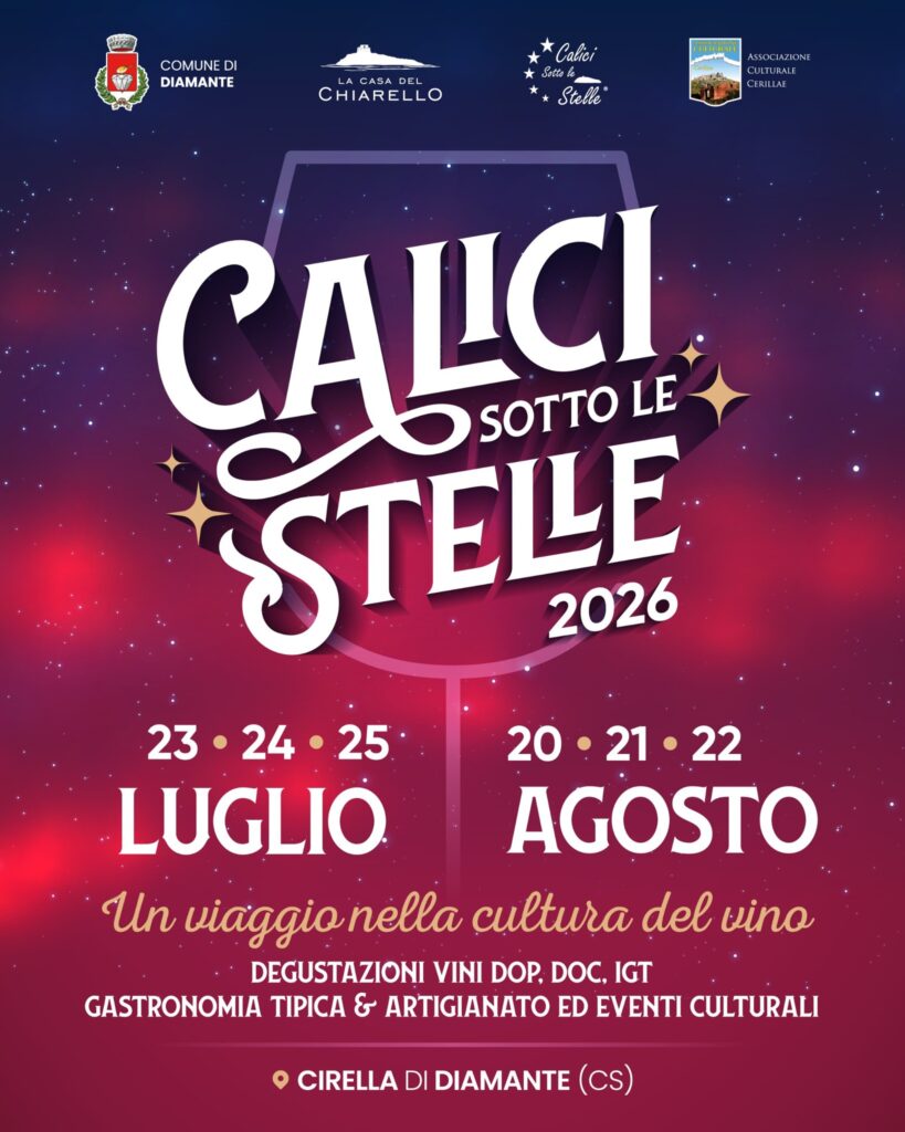 Sei serate che nel tempo hanno trasformato la manifestazione in molto più di una semplice rassegna enologica: un vero rito dell’estate calabrese e un punto di riferimento per gli appassionati di vino e per chi, nelle notti tra luglio e agosto, cerca esperienze capaci di unire gusto, bellezza e convivialità. Organizzata dall’Associazione Culturale Cerillae e dalla Casa del Chiarello, con il patrocinio del Comune di Diamante, l’iniziativa si svolgerà come da tradizione tra i vicoli e le piazze del suggestivo centro storico di Cirella. Partner istituzionali della manifestazione sono la Regione Calabria, il Gal Riviera dei Cedri e l’Arsac.