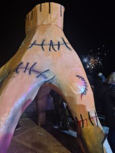 Tema del Carnevale di Diamante 2023 l’incontro fra la tradizione rappresentata da Re Carnevale, realizzato da Eugenio Magurno e raffigurato con un peperoncino, diavolillo, in mano, e l’innovazione rappresentata da Mercoledì Addams protagonista della serie Netflix più in voga al momento. Sono state le moderne Mercoledì a dar vita ad un flash mob sulle note di “Goo Goo Muck” brano anni ’80 dei The Cramps, un modo per sfidare pregiudizi e stereotipi verso chi appare diverso per affermare la propria identità.