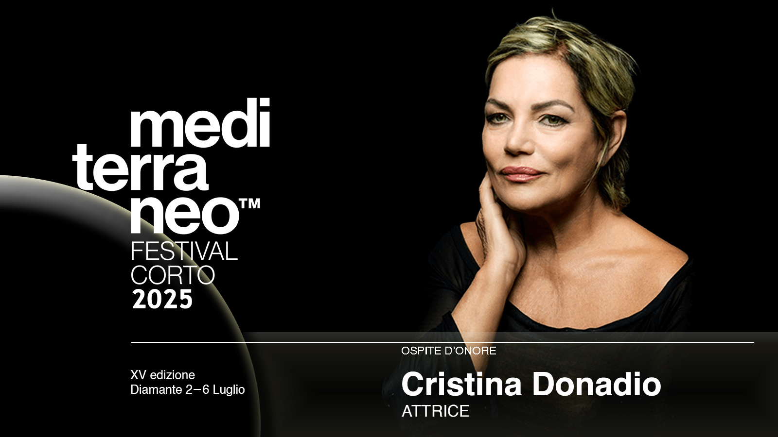 La quindicesima edizione del Mediterraneo Festival Corto vedrà l’attrice Cristina Donadio in qualità di ospite d’onore. Donadio, già Madrina della precedente edizione, sarà presente nei giorni del Festival che si terrà a Diamante (CS) dal 2 al 6 Luglio prossimi.