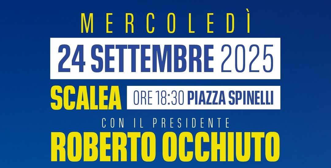I sei candidati dell’alto Tirreno cosentino con il Centro Destra saranno sullo stesso palco insieme a Roberto Occhiuto. L’appuntamento è per domani, mercoledì 24 settembre, alle ore 18.30, in piazza Spinelli, a Scalea.