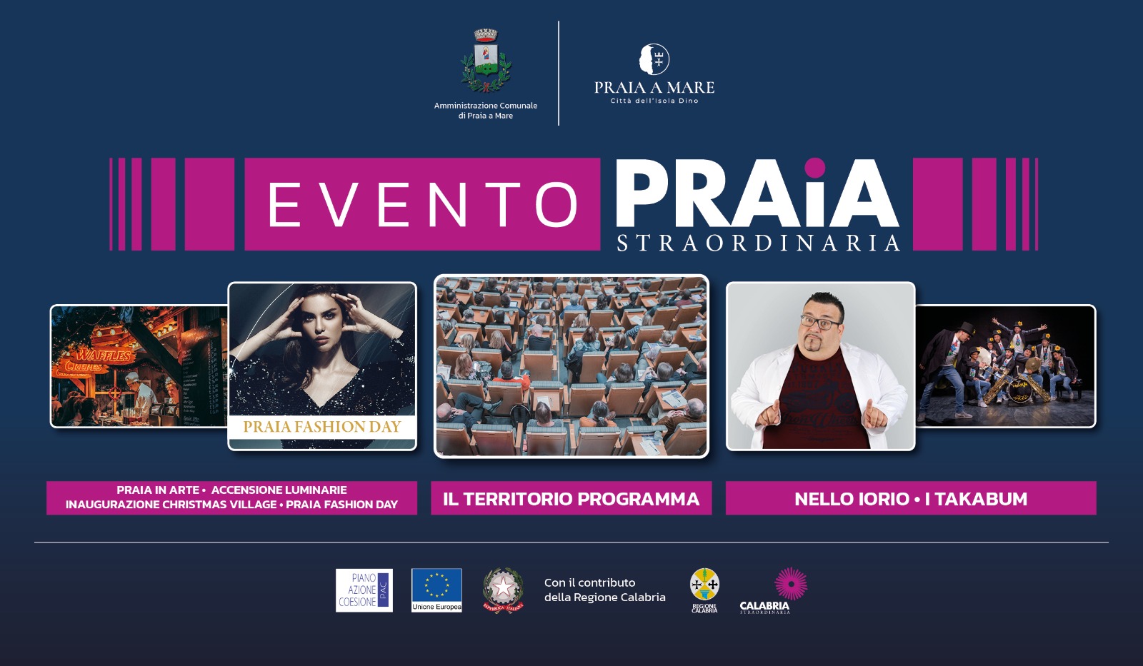 C’è fermento a Praia a Mare, sempre più città degli eventi, grazie alla programmazione predisposta dall’amministrazione comunale, organizzatrice di Praia Straordinaria, rassegna in programma da mercoledì 7 a sabato 10 dicembre 2022.