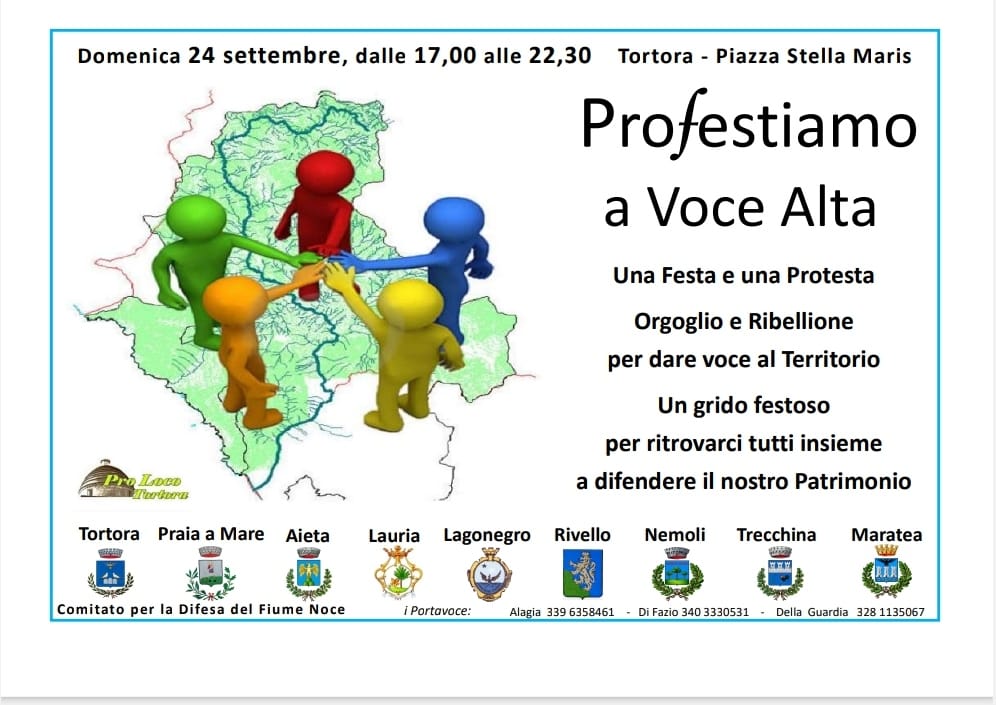 La formula è quella della “proFesta”, gioco di significati tra le parole protesta e festa, questo perché domenica 24 settembre, in piazza Stella Maris di Tortora, dalle ore 17 alle ore 22.30, non ci saranno solo i sindaci dei comuni interessati, il vescovo della diocesi San Marco Argentano/Scalea, Stefano Rega, e rappresentanti della politica nazionale, ma anche scuole di danza e band musicali.