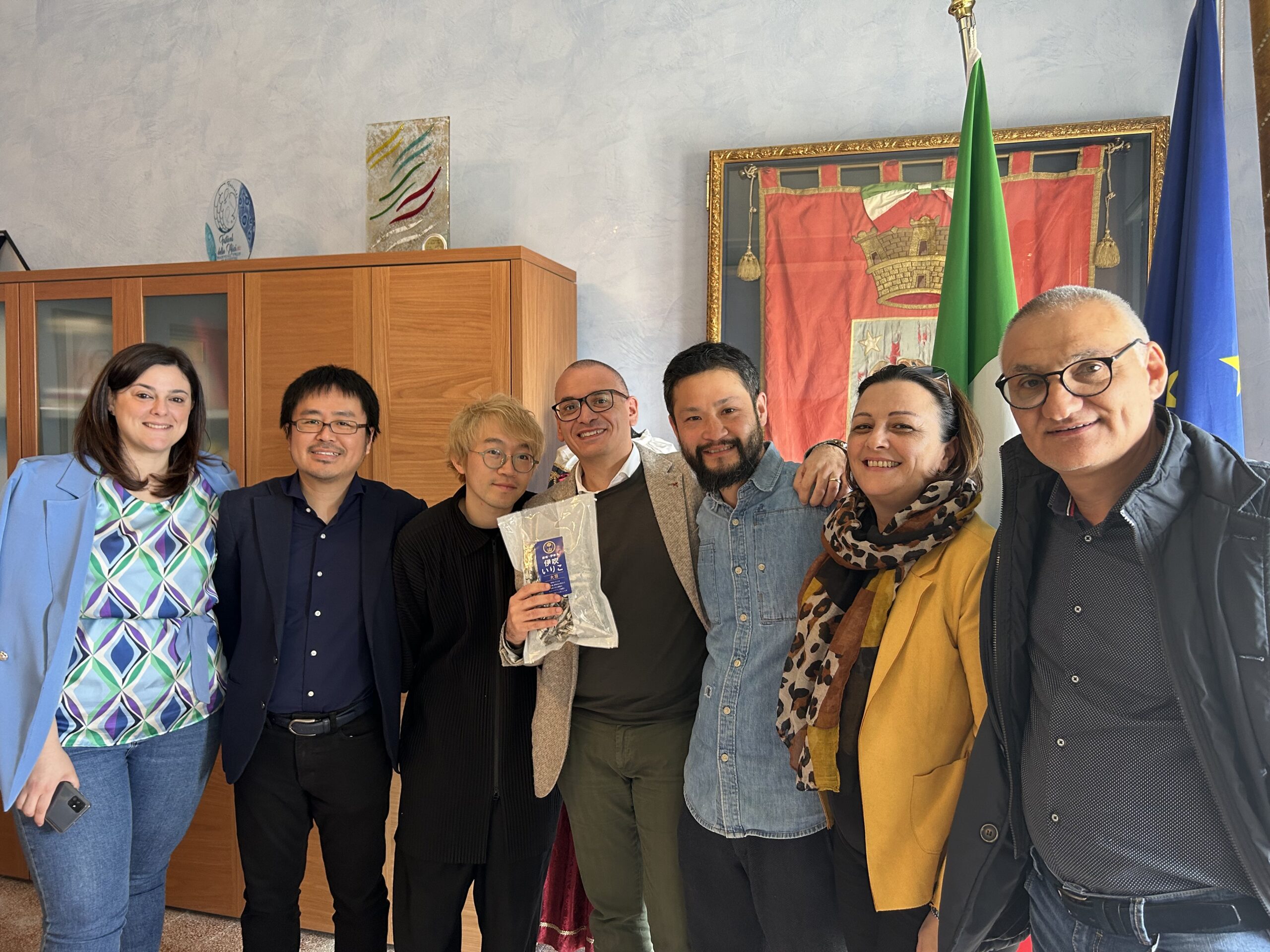 Ieri, la delegazione giapponese, composta da Yusuke Taguchi, Naoyoshi Itani, Eri Sawai e Ruysuke Ota, è stata ricevuta in Municipio dal sindaco Giacomo Middea, facendo seguito ad un primo incontro avvenuto, mesi addietro, ad Altomonte, grazie all’intermediazione dell’agrichef Enzo Barbieri, divenuto ormai il padrino del nostro Festival. Successivamente, è stata ospita dell’associazione Pro Fuscaldo.