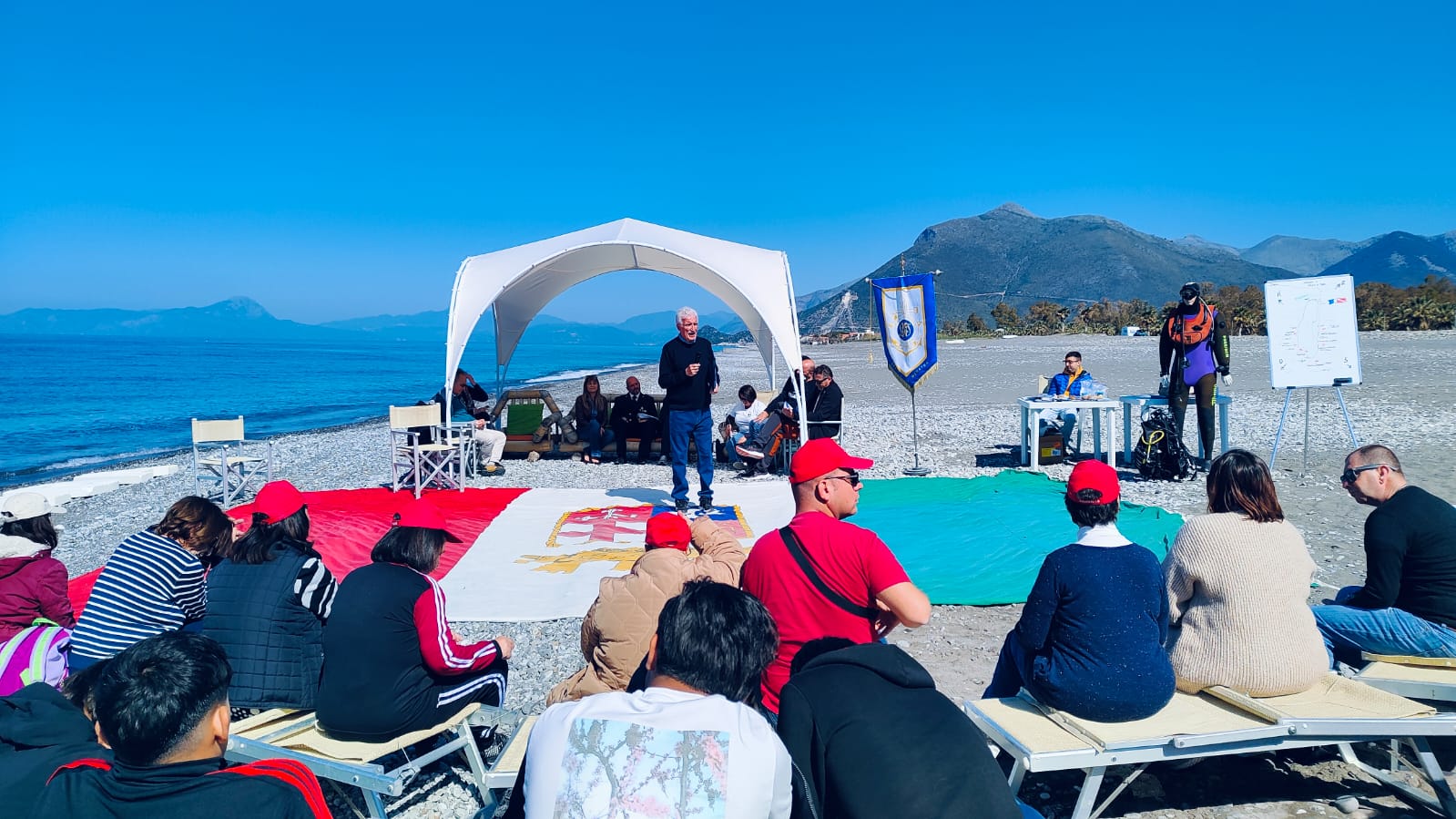 Oltre ai rappresentanti delle sezioni della Lega Navale Praia-Tortora, c’erano il presidente della Lega Navale Maratea; il comandante dell’ufficio praiese della Capitaneria di Porto, Marco Boschetti; il sindaco di Tortora, Antonio Iorio; Elisa Selvaggi, assessore dell’amministrazione di Praia a Mare; Valentina Paduano, presidente dell’associazione Wwf “Terre di parchi lucani”; i rappresentanti della Sea Horse, associazione che promuove le immersioni subacquee e che svolge anche un importante lavoro di salvaguardia dei fondali dell’Isola Dino; Antonella Palladino e Carmelo De Leo, rappresentanti zonali della onlus Plastic Free; Franca Parise, presidente dell’associazione Teniamoci per Mano.