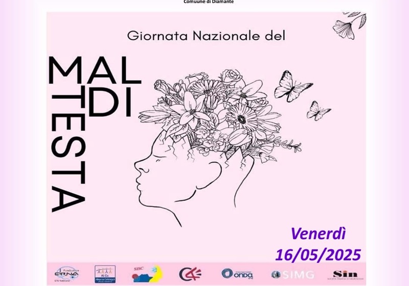Venerdì 16 maggio, in occasione della “Giornata Nazionale del Mal di Testa” si terrà a Diamante (Cs), presso la Sala Consiliare, un’iniziativa che si propone di sensibilizzare la popolazione sulle patologie legate a questo disturbo.