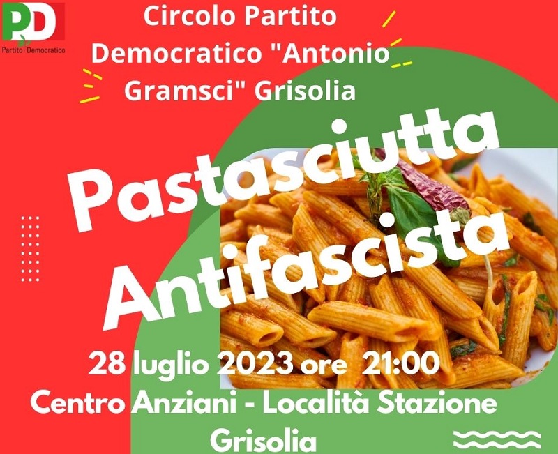 Il Circolo del Partito Democratico “Antonio Gramsci” di Grisolia (CS) in collaborazione con il Centro Anziani di Località Stazione, in occasione degli ottanta anni dalla caduta del fascismo organizza la Pastasciutta Antifascista, in memoria di un episodio avvenuto a Campegine il 25 luglio 1943 quando i fratelli Cervi sebbene sapessero che la guerra non era davvero terminata, decisero di festeggiare comunque l’evento.