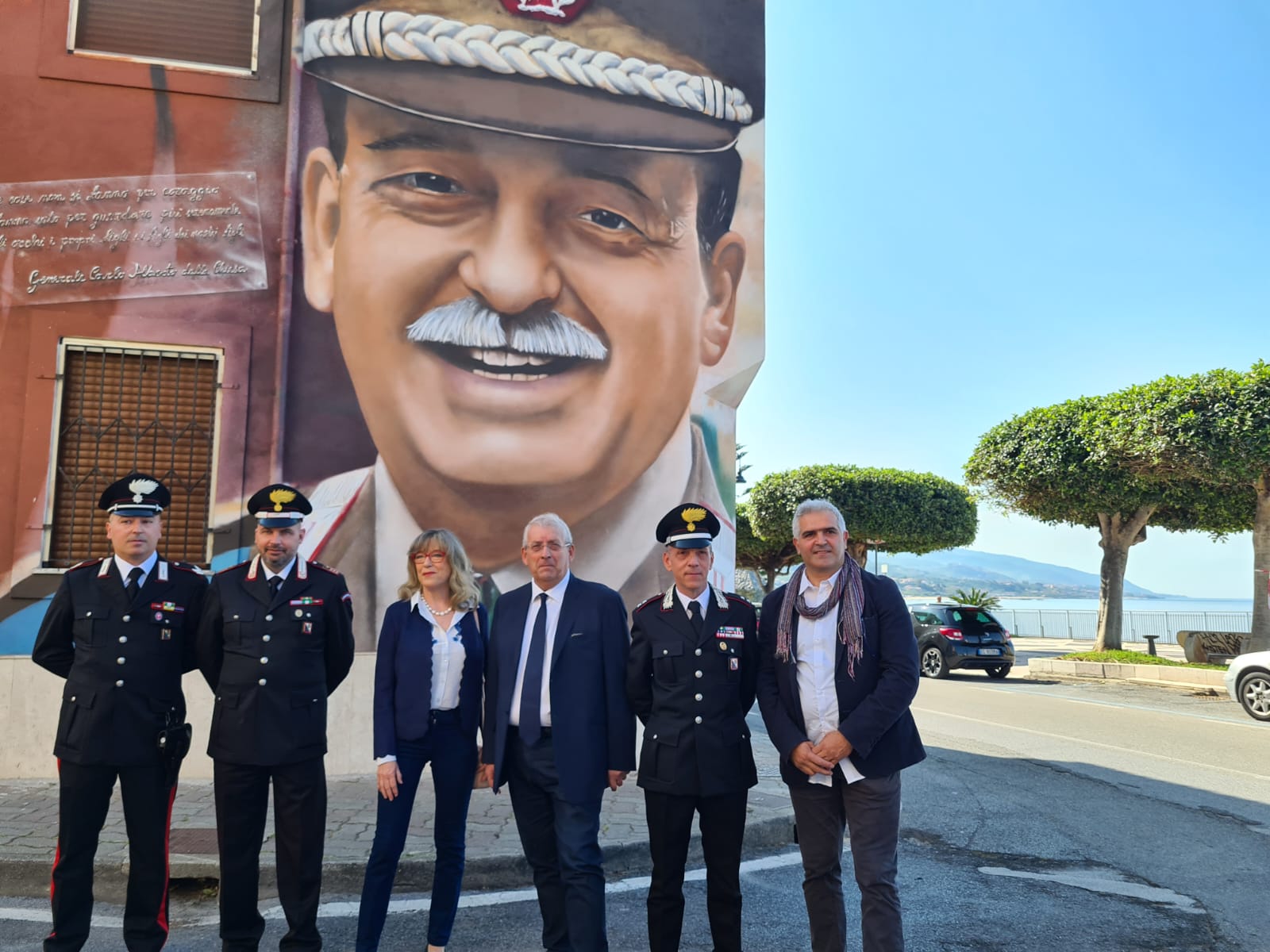 Percorrendo il lungomare di Diamante, da Piazza XI Febbraio fino alla parte opposta, si arriva al murale realizzato da Agostino Cirimele nel febbraio 2023. Sulla facciata del palazzo, si riconosce il volto trasparente e sorridente del Generale Carlo Alberto Dalla Chiesa. L’espressione serafica di chi si impegna ogni giorno per fare del mondo, dell’Italia e della Sicilia, un mondo più giusto, più onesto, più libero.