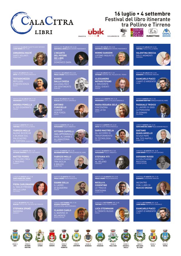 Un programma proposto dalla Libreria Victoria Ubik di Praia a Mare in collaborazione con la UNPLI della Provincia di Cosenza; attori che, sul territorio, hanno già dimostrato la validità di formule legate a una promozione culturale in generale e del libro in particolare attraverso manifestazioni che, pur avendo una vocazione nazionale, hanno mostrato sempre e comunque un particolare interesse anche alla promozione degli autori e soprattutto degli editori calabresi.