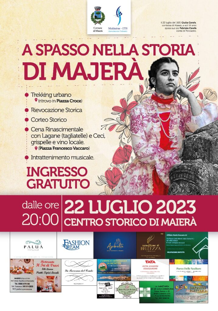 A Maieràsabato 22 luglio il Passato torna a vivere, il Passato si fa Presente, con la manifestazione “A Spasso nella Storia di Majerà”, organizzata dall’associazione Makhairas con il patrocinio dell’Amministrazione Comunale.