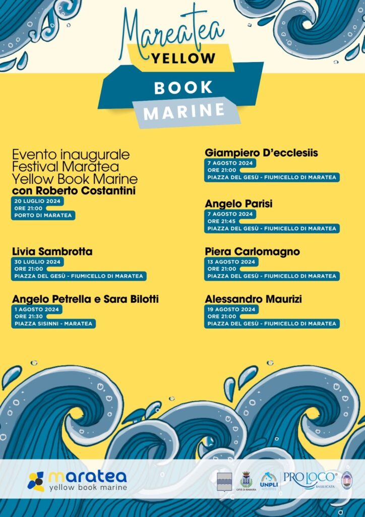 Manca davvero poco al taglio del nastro della seconda edizione del Maratea Yellow Book Marine, il primo festival lucano dedicato al giallo e al noir. L’iniziativa nata dalla collaborazione tra la Notte Bianca del Libro e il Festival SalerNoir d’intesa con la Pro Loco e il Comune di Maratea, che nelle persone del Sindaco, Cesare Albanese, dell’Assessore al Turismo, Daniela Calderano, e del Consigliere delegato alla Cultura, Francesco Santoro, ha fortemente sostenuto l’evento, vedrà la partecipazione di numerosi scrittori e scrittrici di genere a partire da Roberto Costantini, che sabato 20 luglio, nella splendida cornice del Porto turistico della “Perla del Tirreno”, dialogherà con Pierluigi Smaldone, avvocato, Piera Carlomagno, Direttore Artistico MYBM 2024, e Simona Bonito, Consigliera di Parità della Provincia di Potenza, delle sue opere.