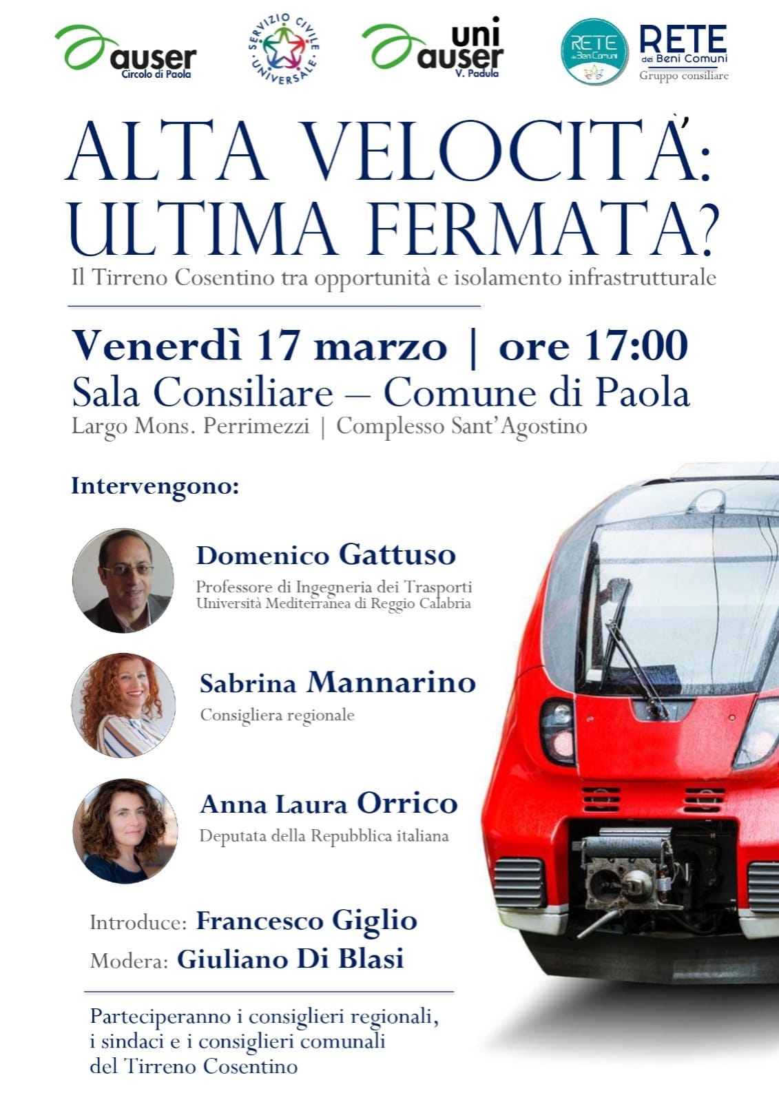 “Alta velocità, ultima fermata? Un dibattito pubblico per una visione comune del territorio”. Il progetto di Raddoppio della Galleria Santomarco, proposto da Rfi Spa come opera strettamente correlata al tracciato dell’Alta Velocità in Calabria, è al centro di un importante dibattito che si terrà venerdì 17 marzo alle ore 17, nella sala consiliare del Comune di Paola.