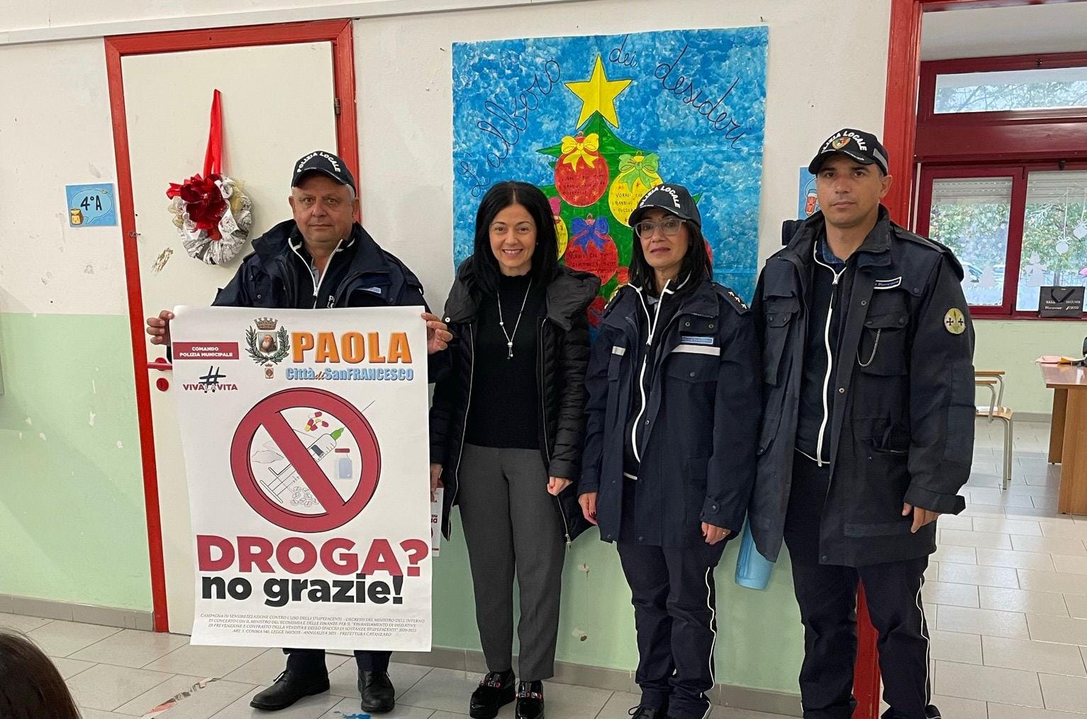 “Droga? No, grazie”. È il titolo della campagna di sensibilizzazione nelle scuole sopracitate promossa dalla giunta comunale grazie al lavoro dell’assessore con delega all’istruzione, Stefania Mirafiori, e la Polizia Locale del comandante, dott.ssa Ivana Cosco, del vice comandante, Rosario Mandarini e del vice ispettore, Massimo Soria.