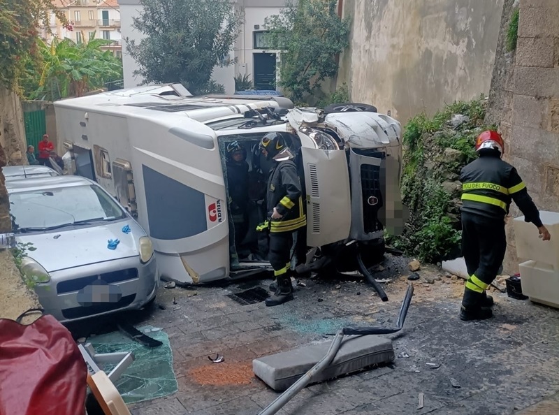Sulla dinamica dell’incidente si sta indagando. Sul posto, i Vigili del Fuoco che hanno provveduto a mettere in sicurezza l’area e stanno recuperando il camper con il supporto di una autogrù.