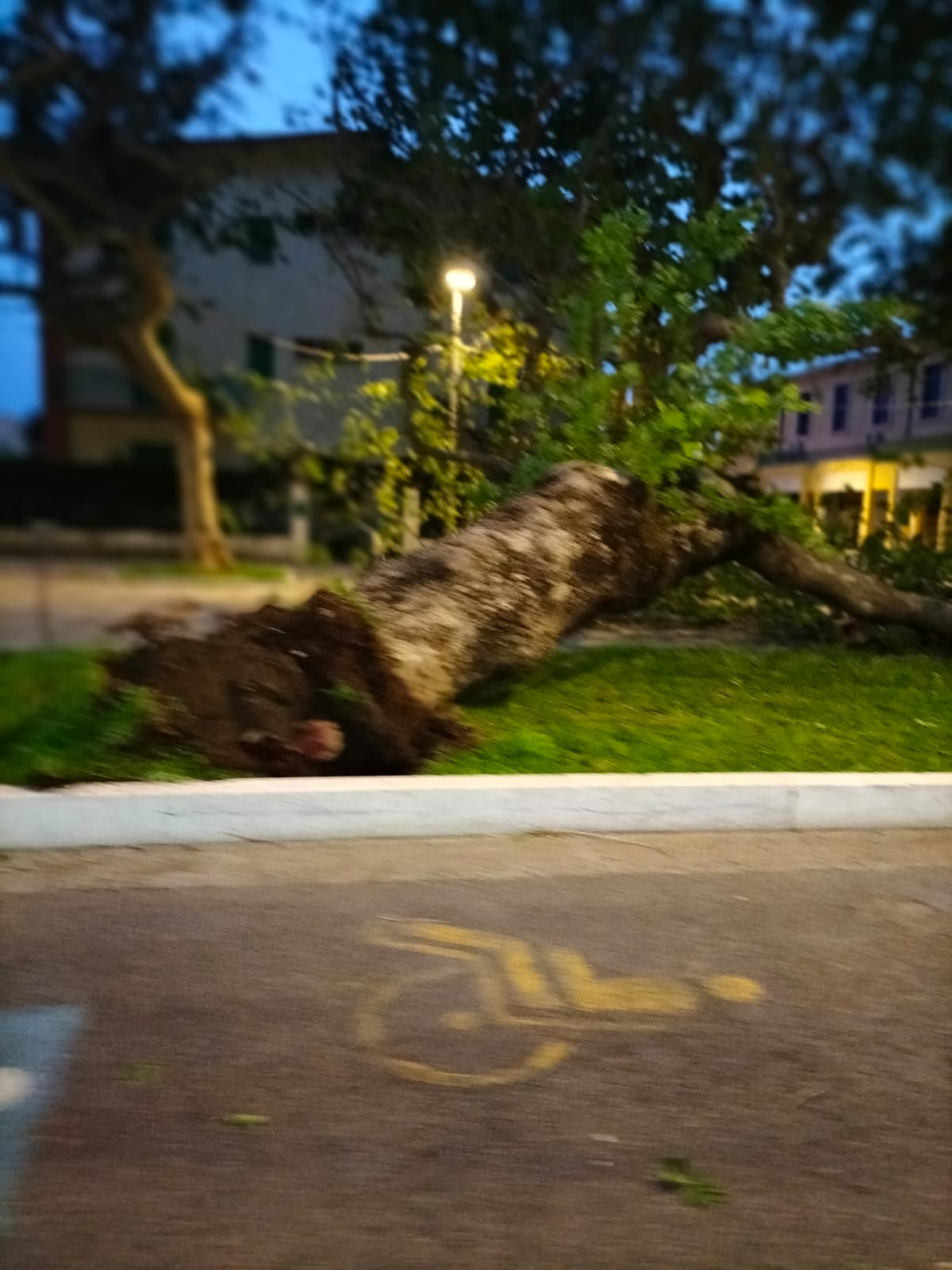 Aggiornamento: si segnala la caduta di un altro albero nei pressi di piazza della Resistenza. Anche in questo caso, per fortuna, nessun ferito. A causa del forte vento, si è deciso di interdire il Viale della Libertà.
