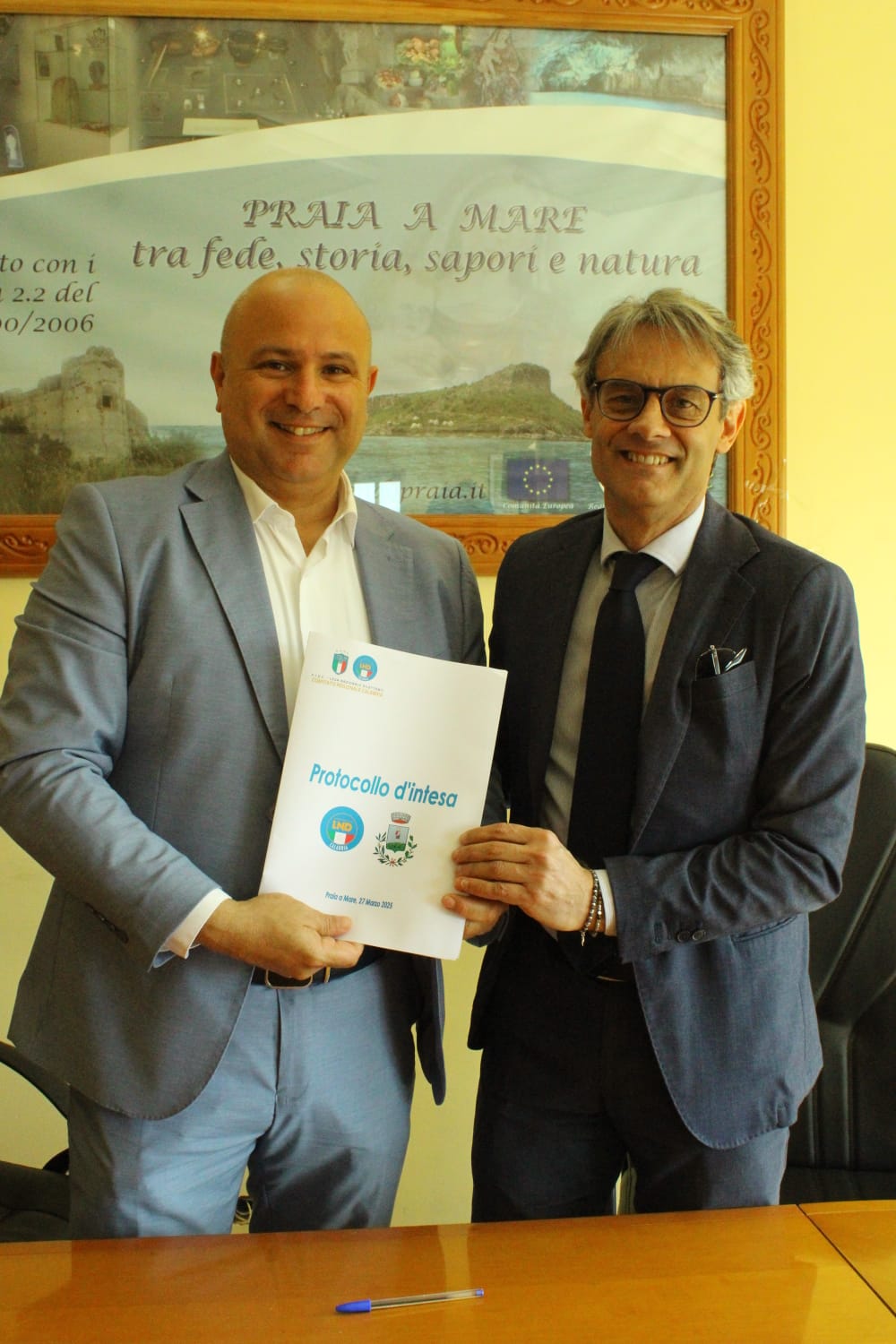 La firma del documento è avvenuta presso la sala consiliare. Nel corso della manifestazione sono state anche consegnate 3 targhe: al Segretario della scuola calcio Digiesse PraiaTortora, Giovanni Oliveto, per il suo impegno al fianco dei giovani; alla memoria di Biagio Aurelio, storico e compianto dirigente del Tortora (riconoscimento che è stato consegnato alla moglie Amelia Mazzillo); e alla Digiesse PraiaTortora, per la valorizzazione dello sport tra le generazioni (targa che è stata consegnata a Biagio De Francesco, presente in rappresentanza della società).