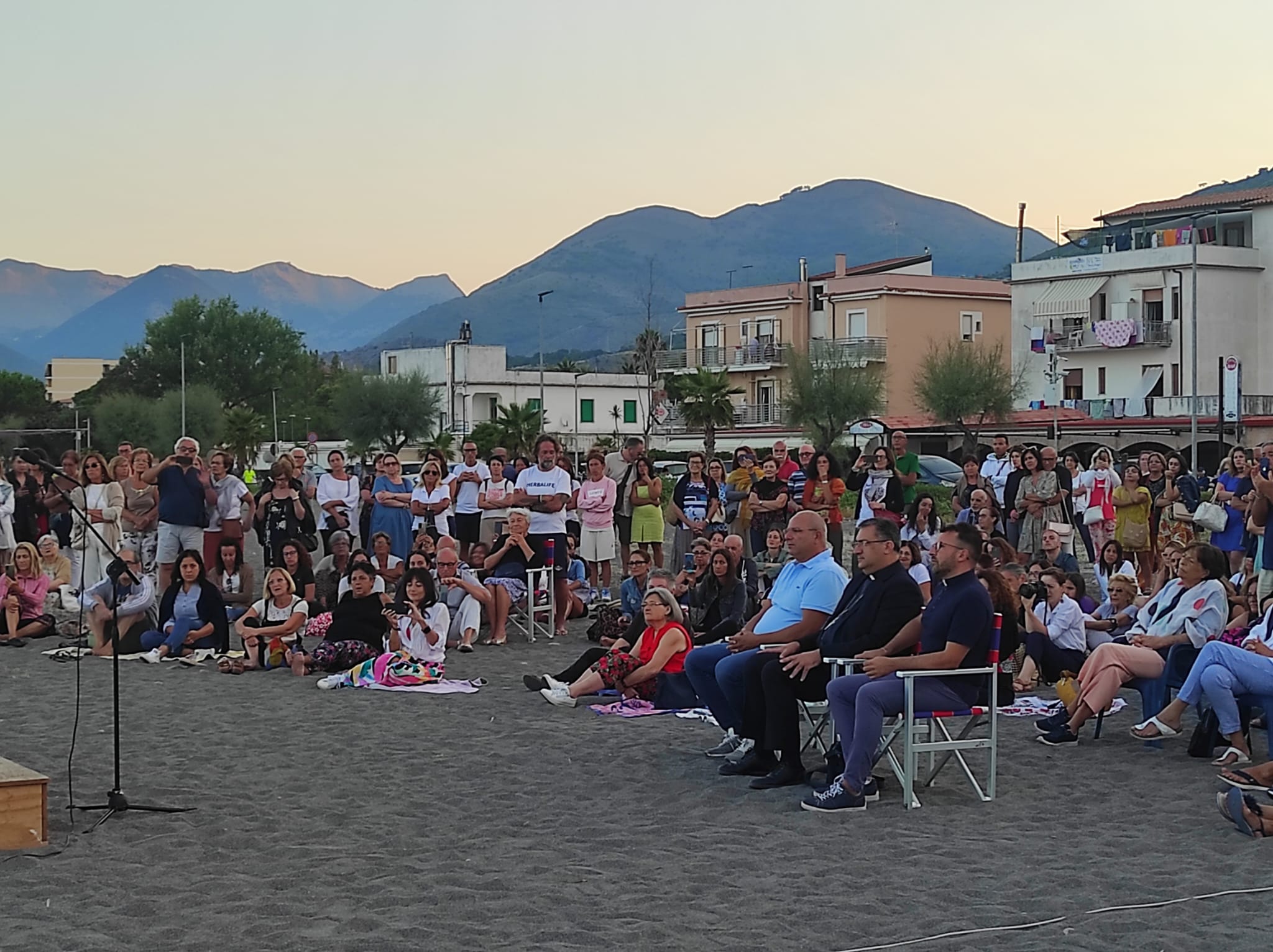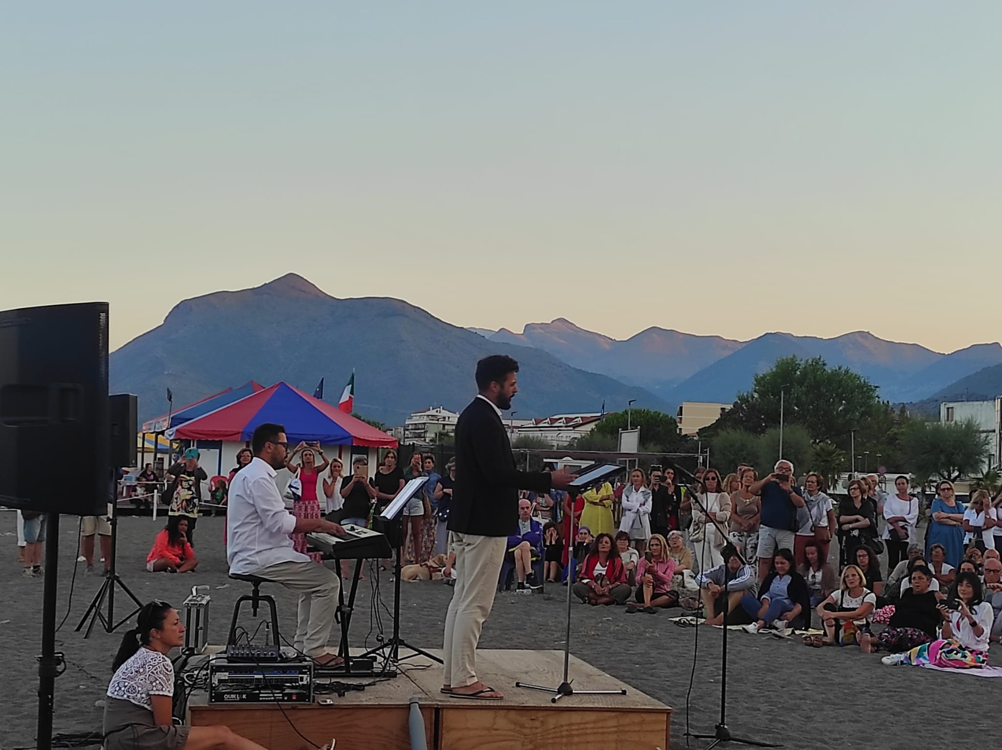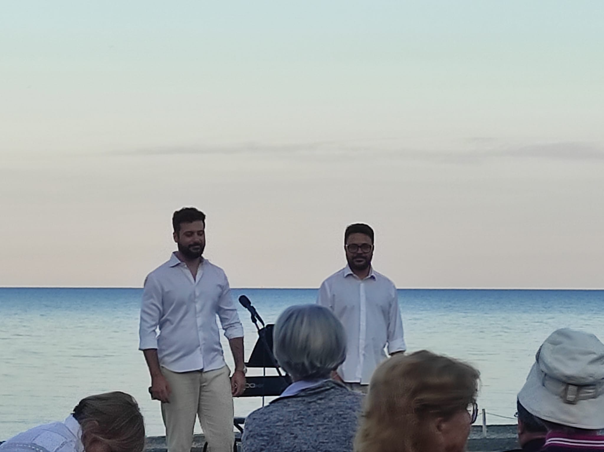 Difficile raccontare le emozioni del concerto tenutosi stamani, lunedì 14 agosto, sulla spiaggia di Praia a Mare. Difficile riuscire a descrivere cosa siano capaci di suscitare nell’anima un canto vibrante, accompagnato dal suono di un pianoforte, mentre i colori dell’alba avvolgono il cielo.