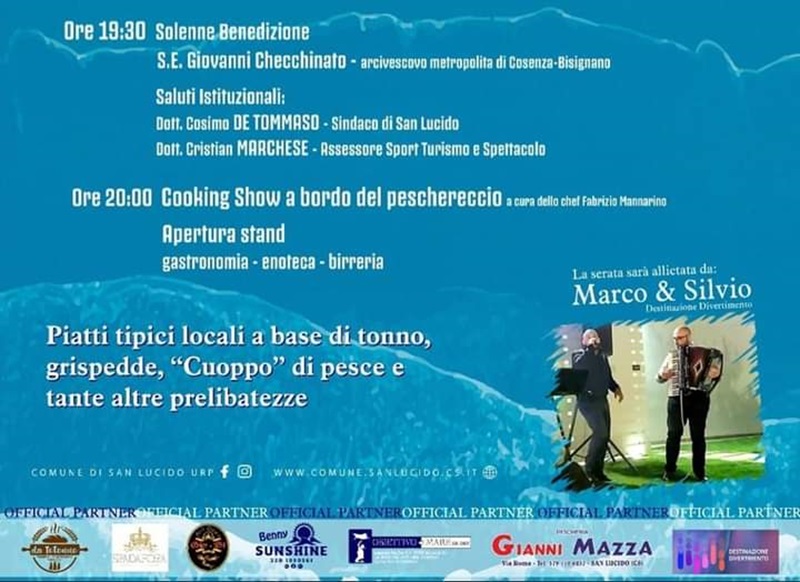 Enogastronomia, prodotti tipici, Musica Live, la presenza delle autorità ecclesiastiche. San Lucido presenta “Le vie del Tonno”. L’evento, promosso dall’amministrazione comunale del sindaco De Tommaso, in collaborazione con la ProLoco e il Comitato Paola Sud Fosse, è in programma Venerdì 28 Giugno 2024 presso il suggestivo porticciolo turistico.