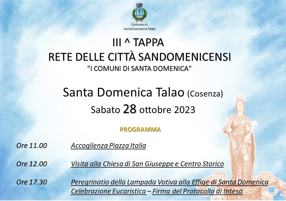 Santa Domenica Talao. Sabato 28 Ottobre la terza tappa della “Rete delle città Sandomenicensi”
