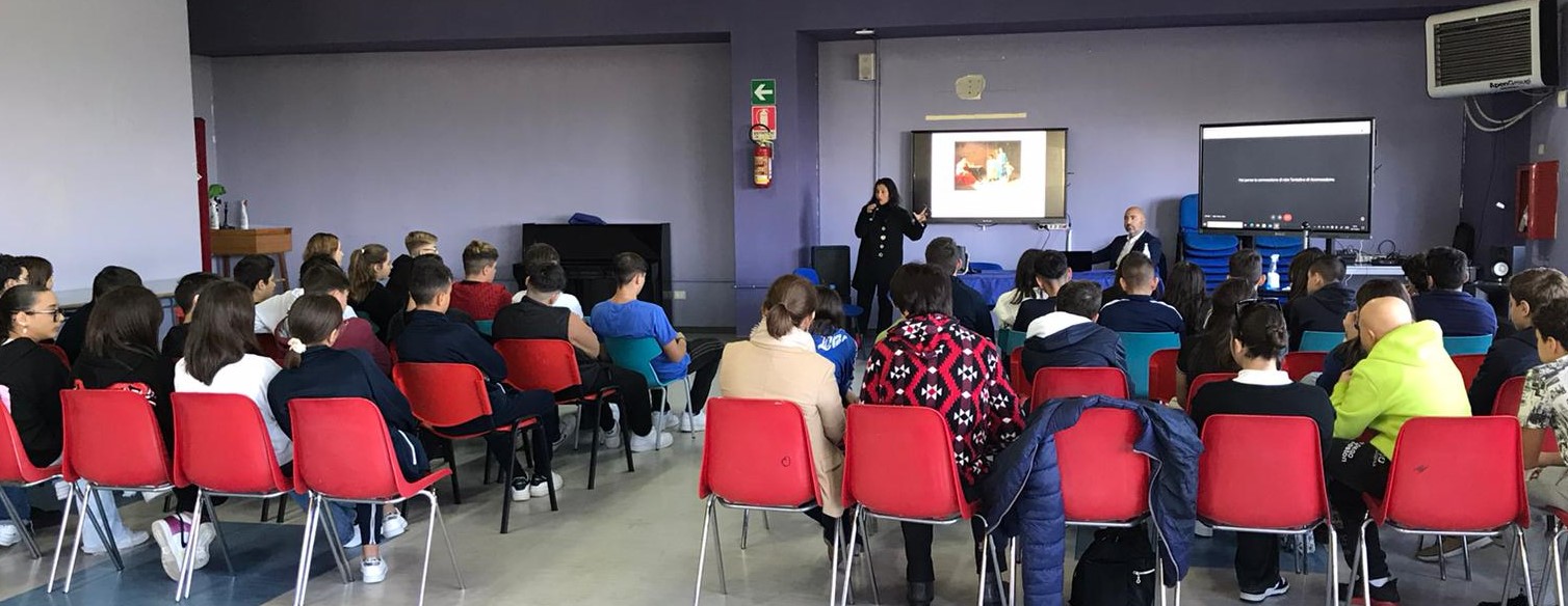 Un incontro formativo- informativo “Come contrastare la violenza di genere” organizzato dalla scuola, nell’Aula Magna della sede centrale di via Lavinium, in occasione della Giornata mondiale contro la violenza sulle donne, che si celebra oggi, 25 novembre. Gli studenti hanno avuto l’opportunità di vivere momenti importanti di confronto e di approfondire i temi della parità di genere, dell’educazione sentimentale, degli strumenti di tutela contro molestie e violenze, con l’intervento degli avvocati tenuto dagli avvocati Achille Ordine e Gemma Guerrera dell’Associazione G.Caloprese, che con garbo hanno saputo catturare l’attenzione dei giovani studenti su tematiche così delicate.
