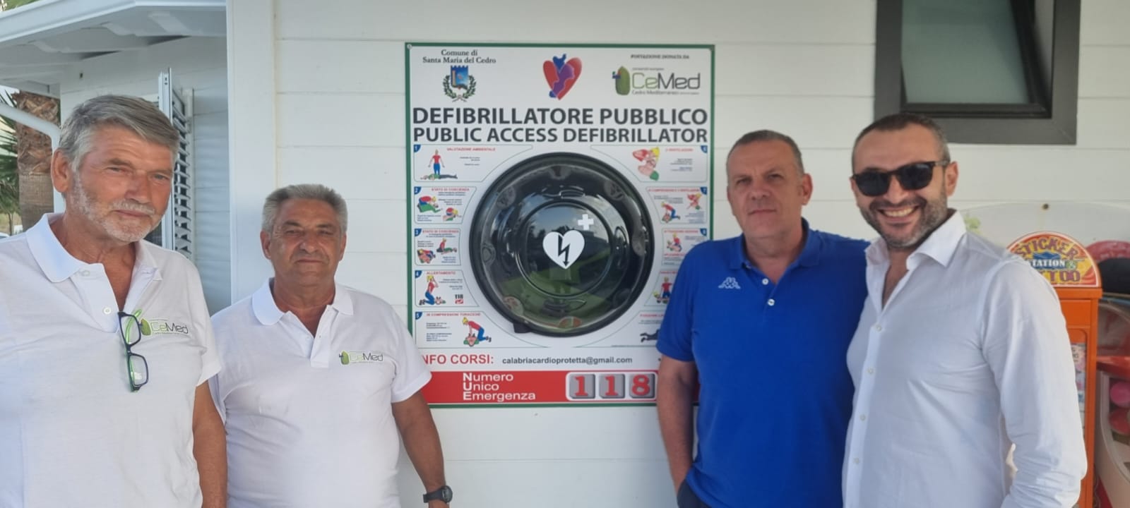 Il Consorzio Europeo del cedro mediterraneo – Terre di Calabria ha donato un defibrillatore alla comunità di Santa Maria del Cedro. La cerimonia di consegna del dispositivo elettromedicale che consente l’esecuzione della defibrillazione elettrica, è avvenuta alcuni giorni fa, presso lo stabilimento balneare Pierino sul lungomare Perlasca della cittadina alto tirrenica dove, grazie alla disponibilità del proprietario il defibrillatore è stato posizionato per offrire un pronto intervento qualora si verificassero casi di arresto cardiaco nelle vicinanze. Presenti durante la consegna, oltre a molti cittadini e turisti, anche il sindaco di Santa Maria del Cedro, Ugo Vetere, il presidente del Consorzio europeo Cedro Mediterraneo – terre di Calabria, Angelo Cava e Giuseppe Bencardino, dirigente medico di cardiologia alla Tirrenia Hospital di Belvedere Marittimo.