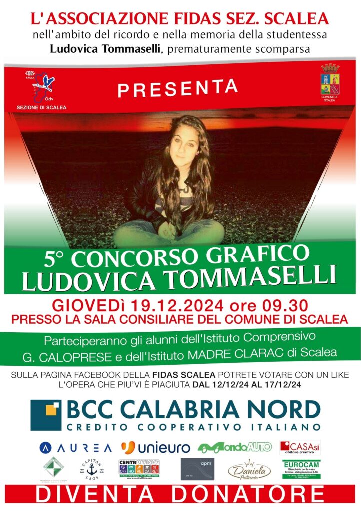 L’associazione dei donatori di sangue, FIDAS ODV sezione di Scalea che opera da un decennio per la divulgazione della cultura del dono del sangue, ha dato il via al Concorso riservato alle scuole primarie e secondarie di Scalea, intitolato a Ludovica Tommaselli, alunna dell’Istituto comprensivo Gregorio Caloprese scomparsa prematuramente 10 anni fa.