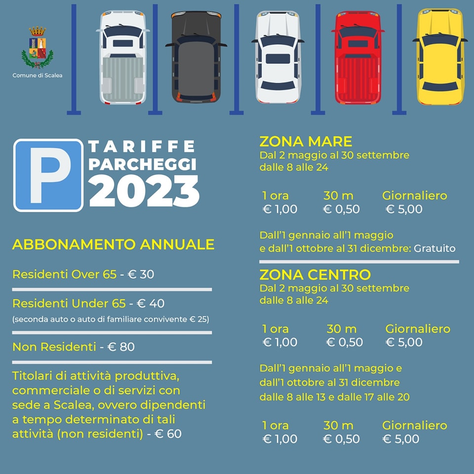 SCALEA. FISSATE LE TARIFFE 2023 PER I PARCHEGGI A PAGAMENTO