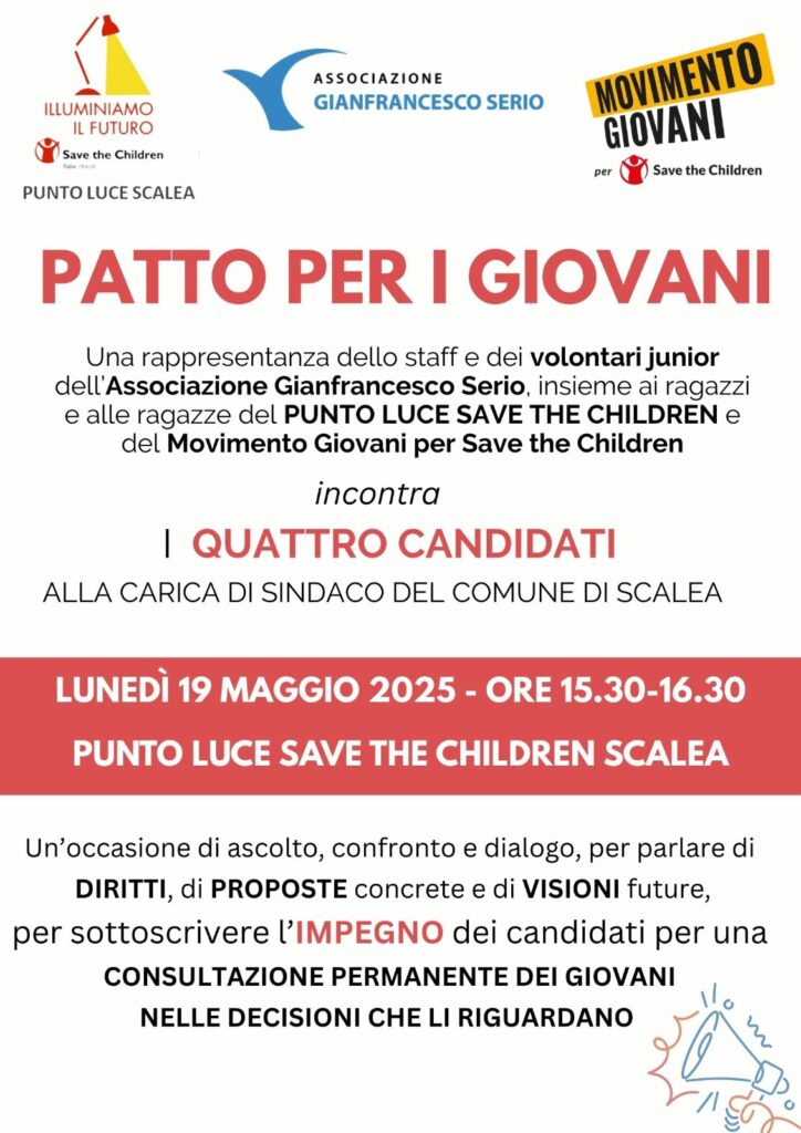 Scalea. “Patto per i giovani”. I quattro candidati sindaco si confrontano Lunedì 19 Maggio con i ragazzi del Punto Luce