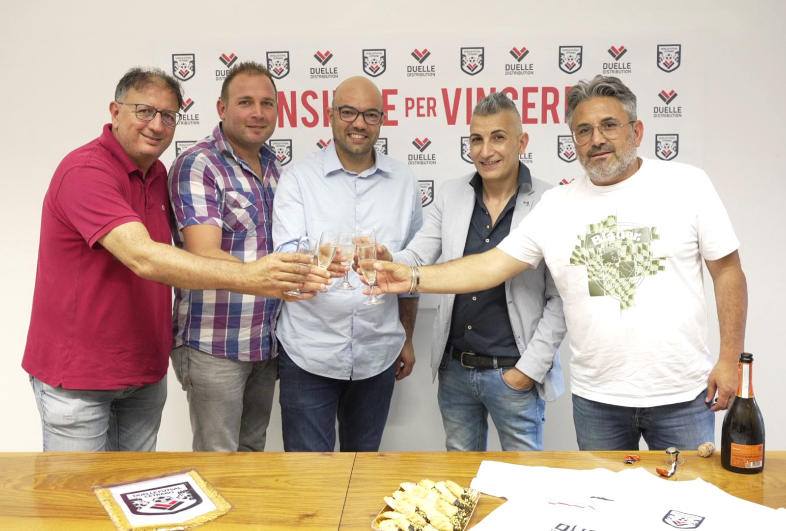 Sorrisi, strette di mano, brindisi. È stata una giornata di festa quella di ieri per la Duelle Futsal Cetraro. Dopo la vittoria dei playoff e la conquista della serie C2, la società di calcio a 5 guidata dal presidente Leo Terranova si prepara ad affrontare la stagione 2023/2024 con rinnovato entusiasmo.