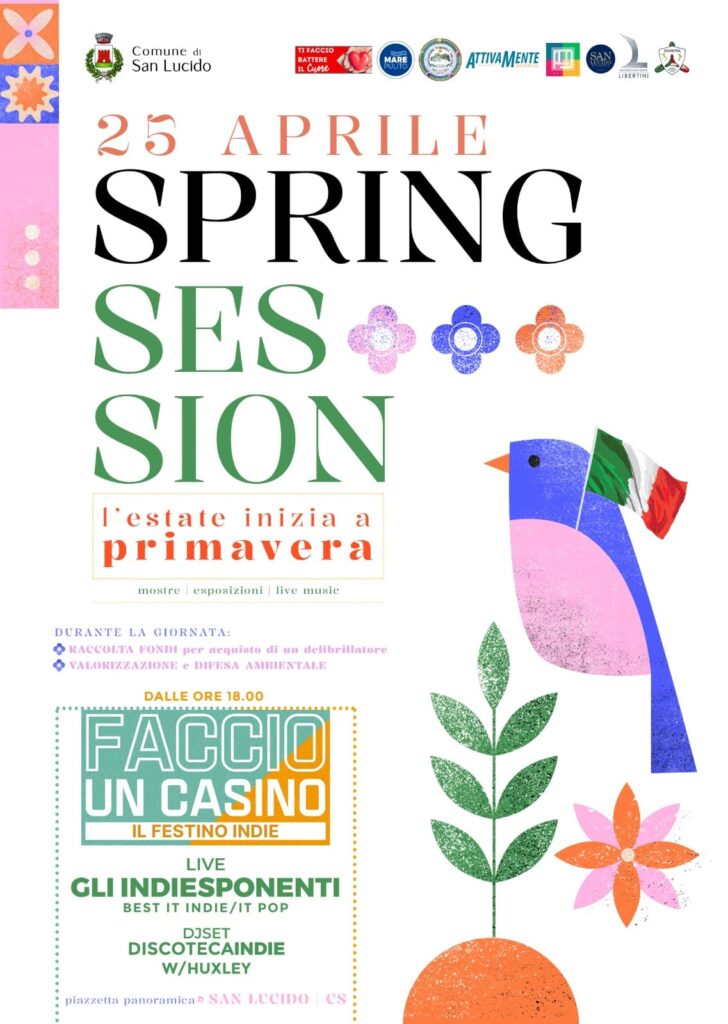 Anche quest’anno a San Lucido l’estate inizia a Primavera, precisamente il 25 Aprile con l’attesissima terza edizione della Spring Session che avrà luogo nella Piazzetta panoramica, tra esposizioni, mostre d’arte e musica live dalle ore 18:00 grazie ad un accattivante concerto indie prima, a al djset dopo.