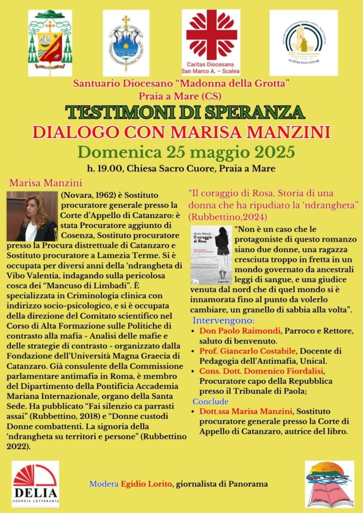 “Testimoni di speranza”, questo è anche il titolo della giornata a cui parteciperà l’autrice, nonché sostituto procuratore generale presso la Corte d’Appello di Catanzaro. L’iniziativa sarà moderata dal giornalista Egidio Lorito.
