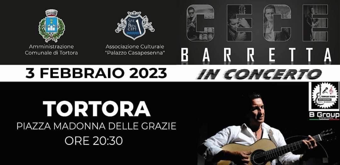 Attesa e grande entusiasmo per l’evento che vedrà protagonista il comune di Tortora il 3 Febbraio, in occasione proprio dei festeggiamenti dedicati a San Biagio, patrono della cittadina tirrenica. L’apprezzato artista calabrese Cece Barretta si esibirà in concerto in Piazza Madonna delle Grazie alle ore 20:30. L’evento, organizzato dall’amministrazione comunale di Tortora, in sinergia con l’Associazione “Palazzo Casapesenna”, sarà realizzato interamente grazie ai contributi volontari provenienti da associazioni e cittadini che si sono attivamente prodigati per offrire un servizio attrattivo e di intrattenimento a beneficio della città e dell’intero comprensorio, senza gravare sulle casse dell’ente.
