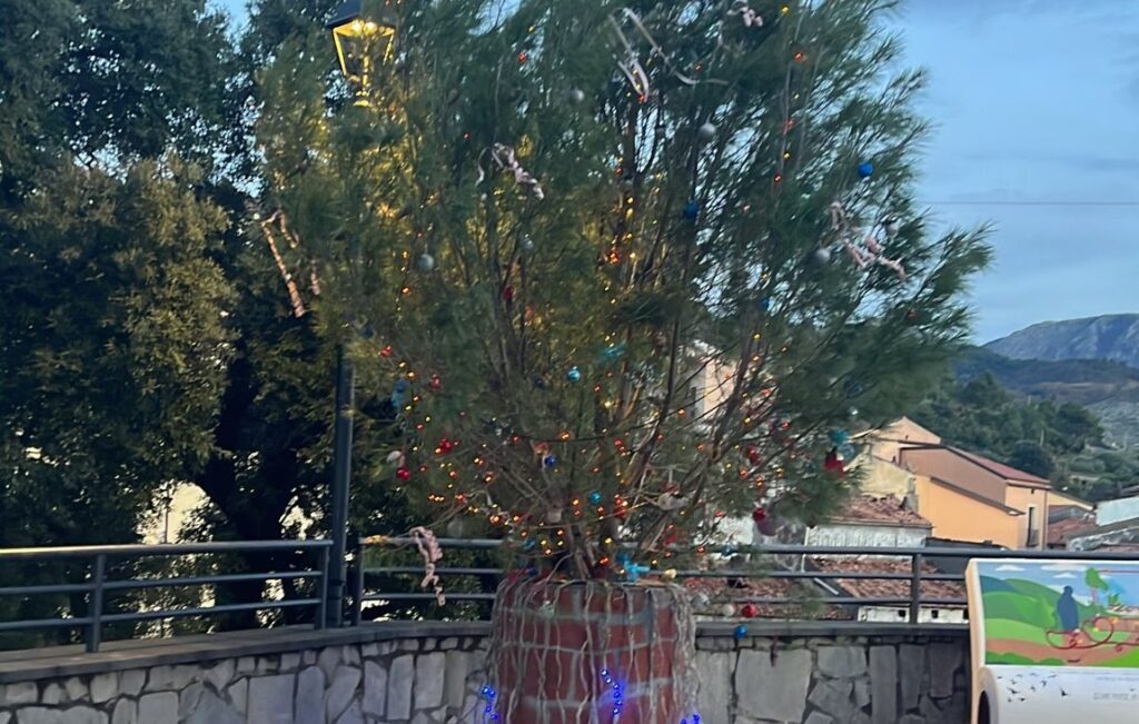 Inoltre, bambini e adulti hanno addobbato anche un pino, offerto da Michele Di Lascio, che resterà per tutto il periodo delle festività sul belvedere Michele Florio, al fianco della panchina letteraria.